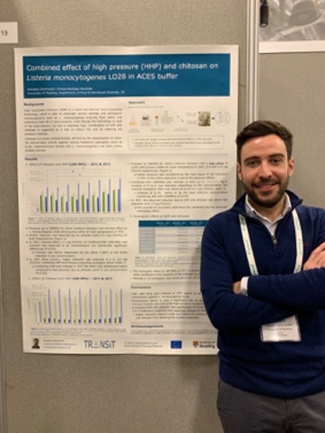S13 was a symposium focused on microbiological risk assessment applications and organised by TRANSIT partners WU and UoM, with Arla Food Representative Elissavet Gkogka (TRANSIT PI) as convenor. Speakers during this symposium were Georgios Pampoukis (Figure 2) from WU (ESR10 in TRANSIT consortium), Sara Bover-Cid from IRTA, and Aricia Possas from UCO.